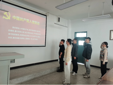 活动中,全体起立,张冬梅同志作为领誓人带领所有党员重温入党誓词。党员同志面向党旗庄严宣誓,在铮铮誓言中重温入党初心,坚定理想信念,牢记职责使命。